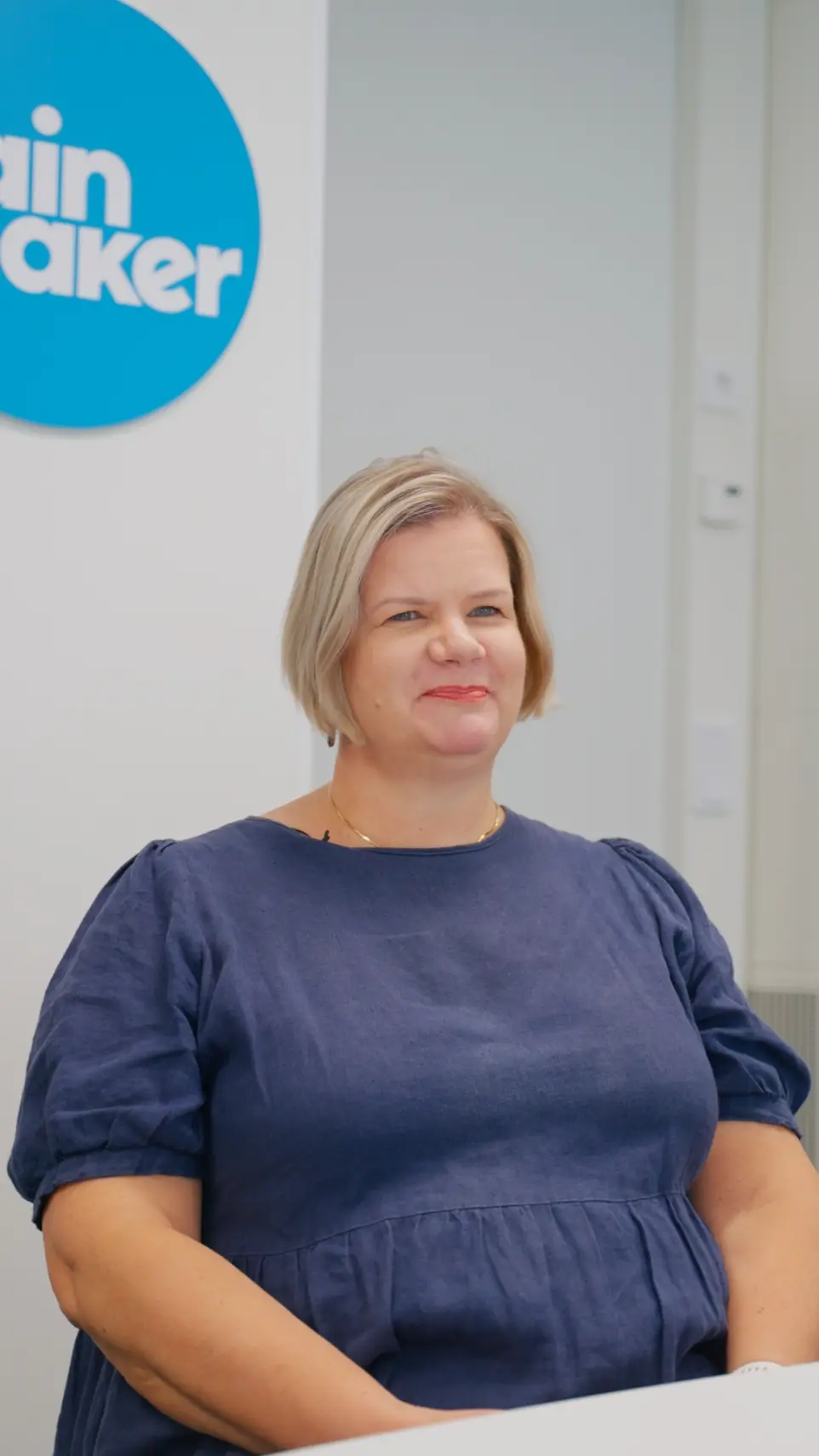 Leena työskentelee Jyväskylän toimistolla asiakaspalvelussa. Hän on ollut Rainmakerilla noin kaksi ja puoli vuotta, ja taustalla on aiempaa kokemusta kouluttajana. Silloin hän veti asiakaspalvelukoulutuksia – nyt hän saa hyödyntää osaamistaan käytännössä joka päivä.
